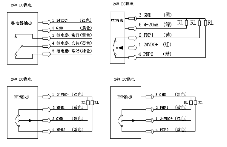 · 1 路繼電器¦ 2 路 NPN¦ 2 路 PNP;2 路 PNP+4mA~20mA DC(定制)