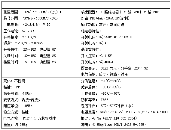 四、外形結(jié)構(gòu)及電氣連接注: 以上參數(shù)測試介質(zhì)為水; 5cm/s~100cm/s; 20℃(出廠狀態(tài))