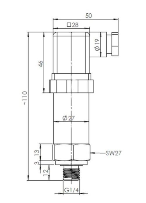 SPT21型壓力變送器的壓力接口為G1/4外螺紋,可以直接安裝在測量管道的接頭上。為便于安裝和維修,接頭與管道之間建議加裝截止閥。